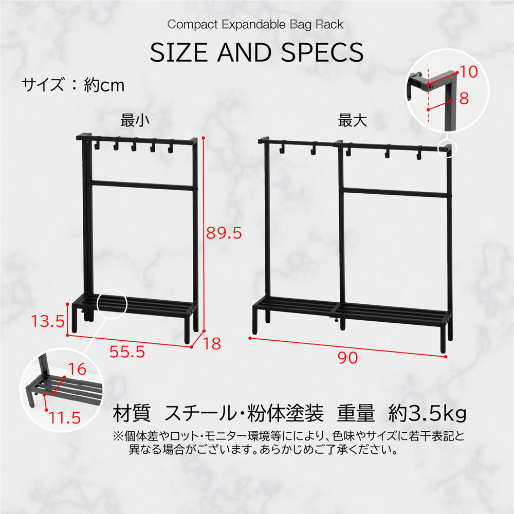 HOME > 家具・収納 > コンパクト伸縮カバンラック