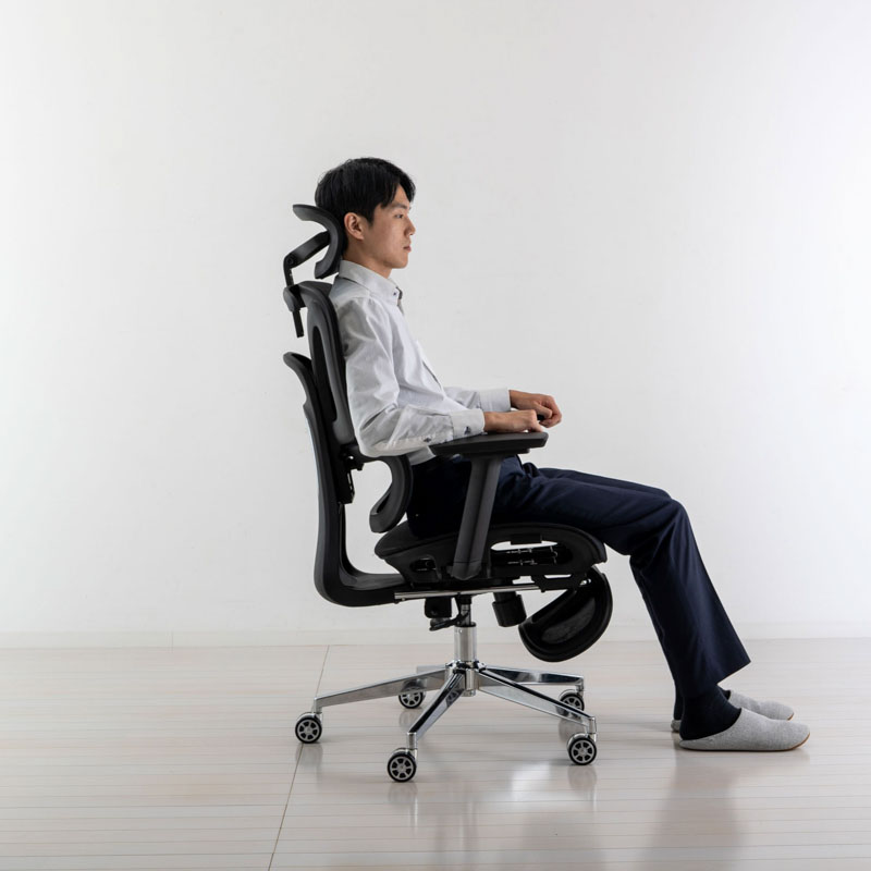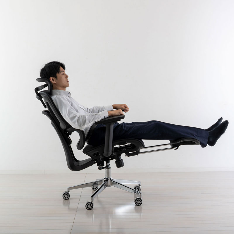 | 説明 | 体格や作業姿勢に応じてヘッドレストの高さと角度調整が可能です。 背面に大型ハンガーがありジャケット等の上着を掛けることができます。 張地はメッシュ素材で通気性に優れサラッと快適です。 |