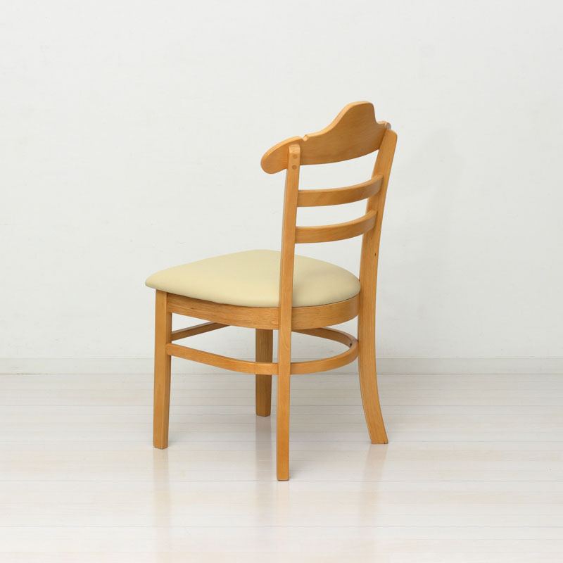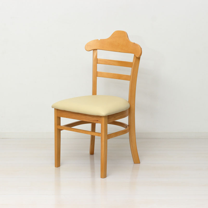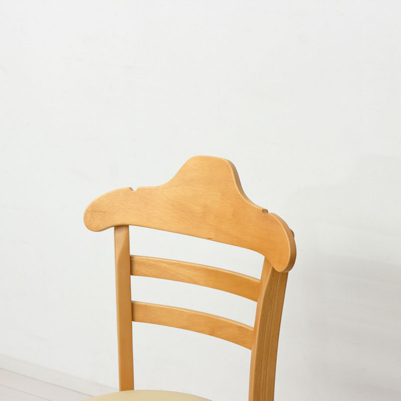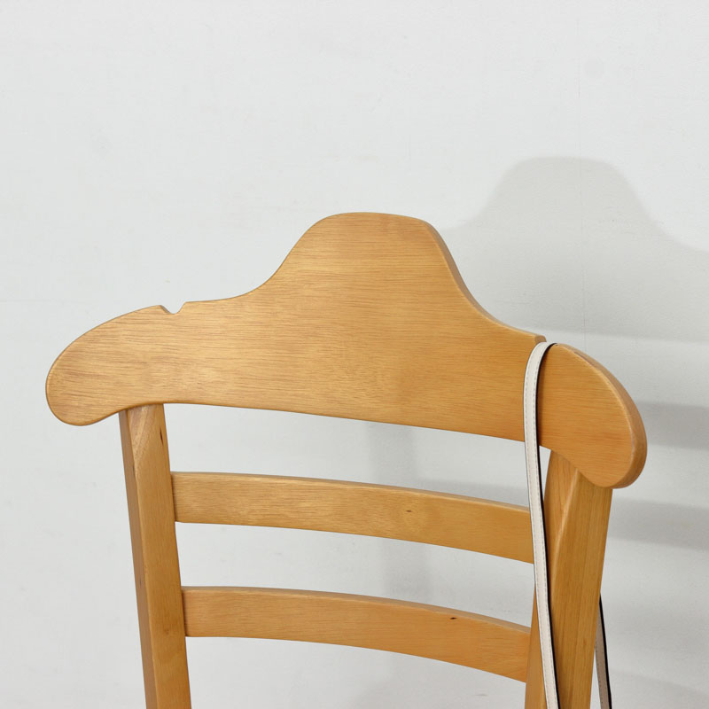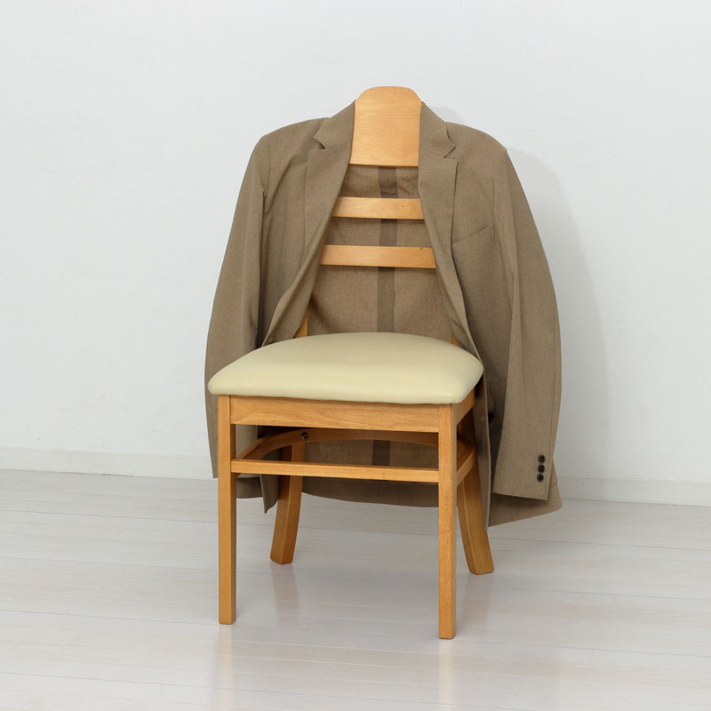 | 説明 | 背もたれはハンガー形状ですので、型崩れを気にせず上着を掛けられます。 ハンガー部分はかばんを掛けられるよう、2ヶ所に凹みがあります。 フレームは温かみのある天然木、座面はお手入れが簡単な合成皮革です。 |