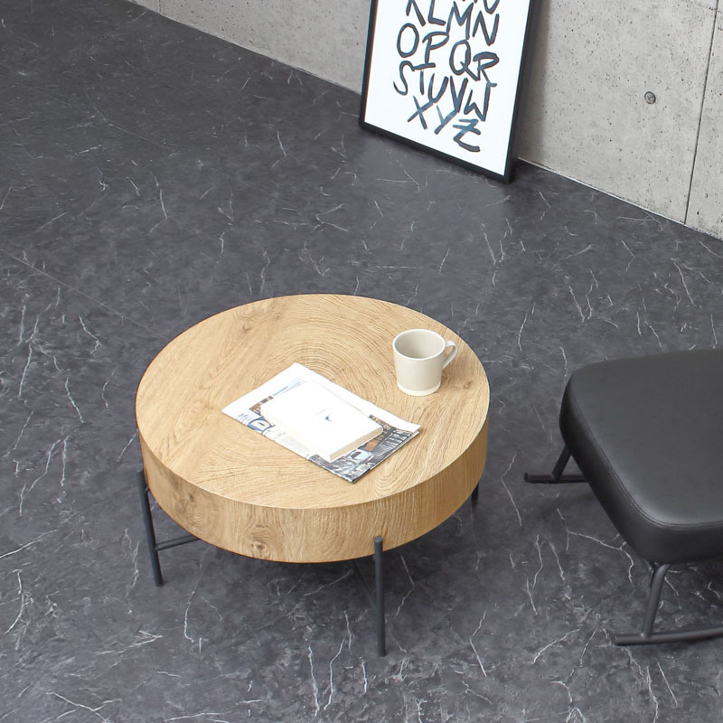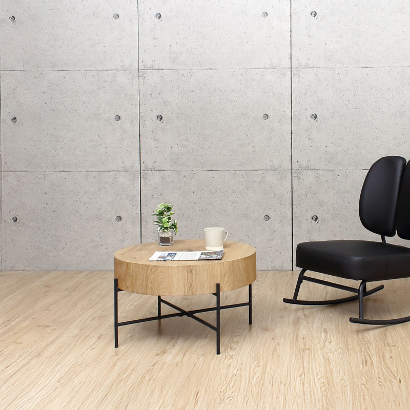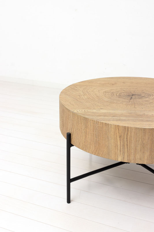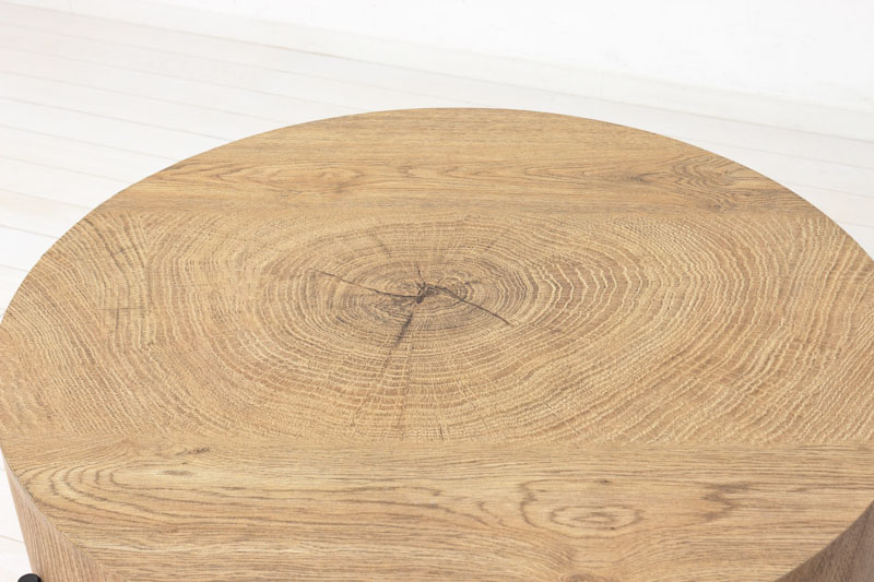 | 説明 | 天板の個性的な木目柄が天然木のような温もりを演出します。 天厚約12cmと重厚感があり、直径約63cmとコンパクトサイズで狭いスペースにも設置ができます。 脚裏はガタつき防止のアジャスターがついています。 |